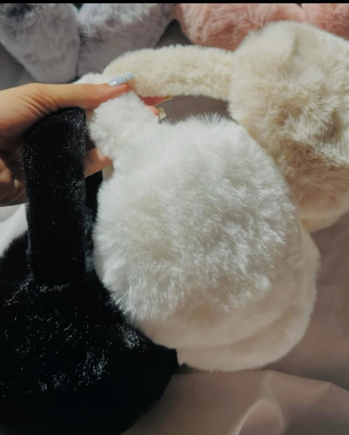 گوشگیر خزدار نسکافه ای مشکی سفید